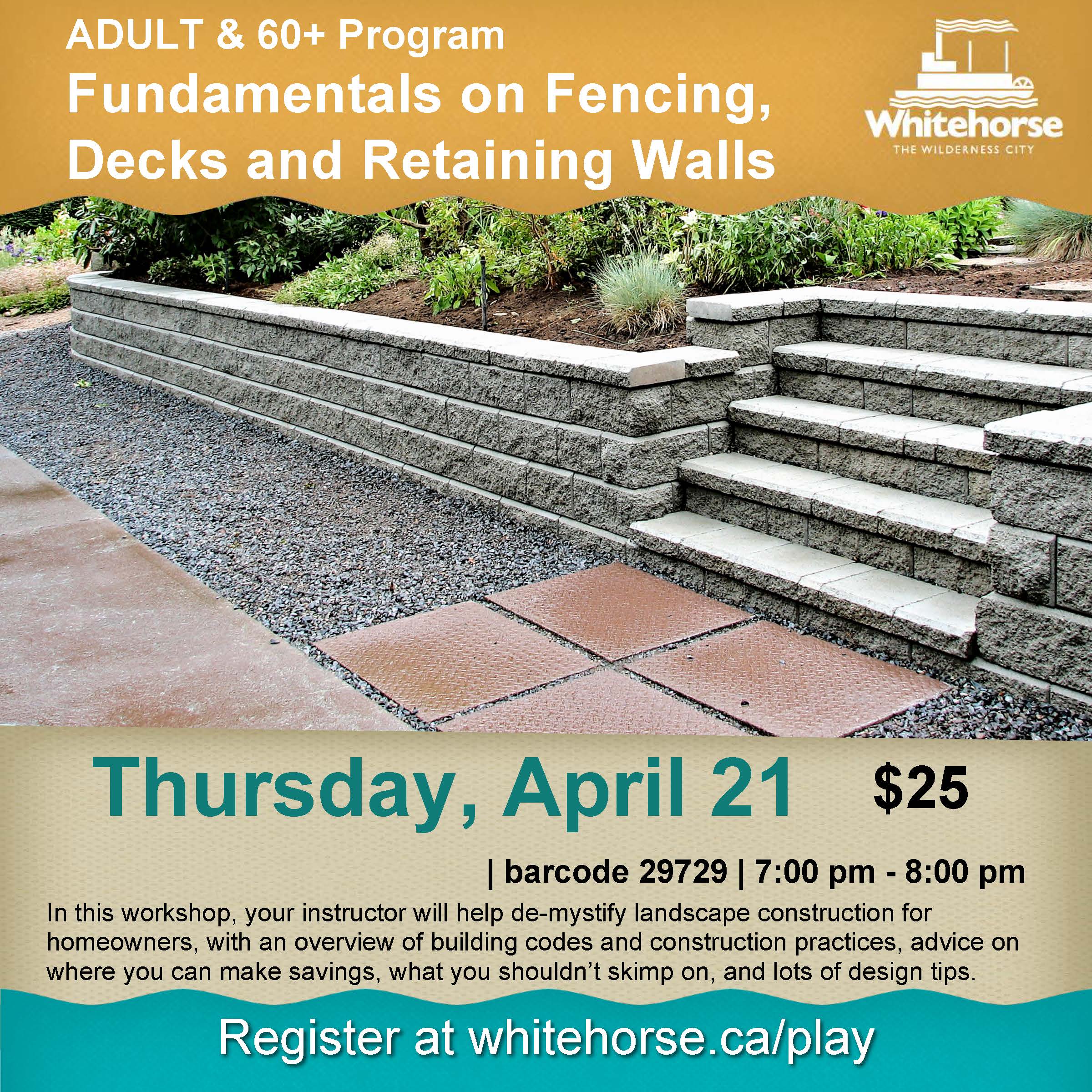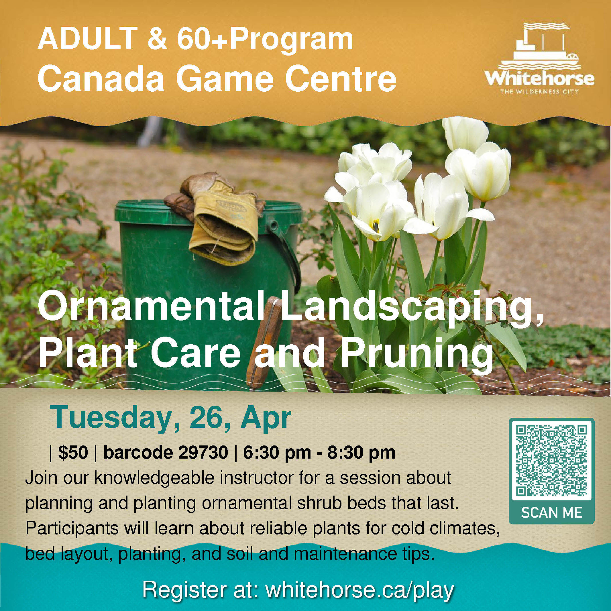 Scheduled just before the tide of the upcoming landscape season rolls in, these sessions are intended to guide you through the steps of planning, installing, and taking care of your outdoor spaces. They are available through the City of Whitehorse Active Living program.